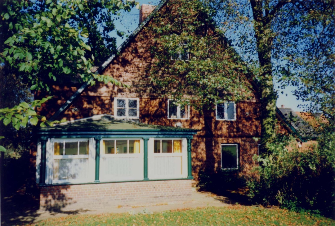 Das Gebäude hat als eins der wenigen den großen Wohltorfer Brand 1877 überstanden. 1927, wie ich aus den als Rieselschutz verwendeten Zeitungen im Dach der Veranda schließen konnte, hat mein Urgroßvater eine Veranda aus dem alten Knick "abgestaubt" und als Wintergarten im Süden angebaut. Mit der Verfügbarkeit neuer Baustoffe hat mein Urgroßvater das Dach erneuern lassen: Es wurde 1936 ein weiterer Zwischendachstuhl eingefügt, die Dachfläche voll holzverschalt und die Fläche mit (damals natürlich asbesthaltigem) Eternit eingedeckt, seine Enkelin Ina sollte mit dem Dach keine Sorgen mehr haben. Zusätzlich wurde eine Gaube über dem Eingangsbereich angefügt.