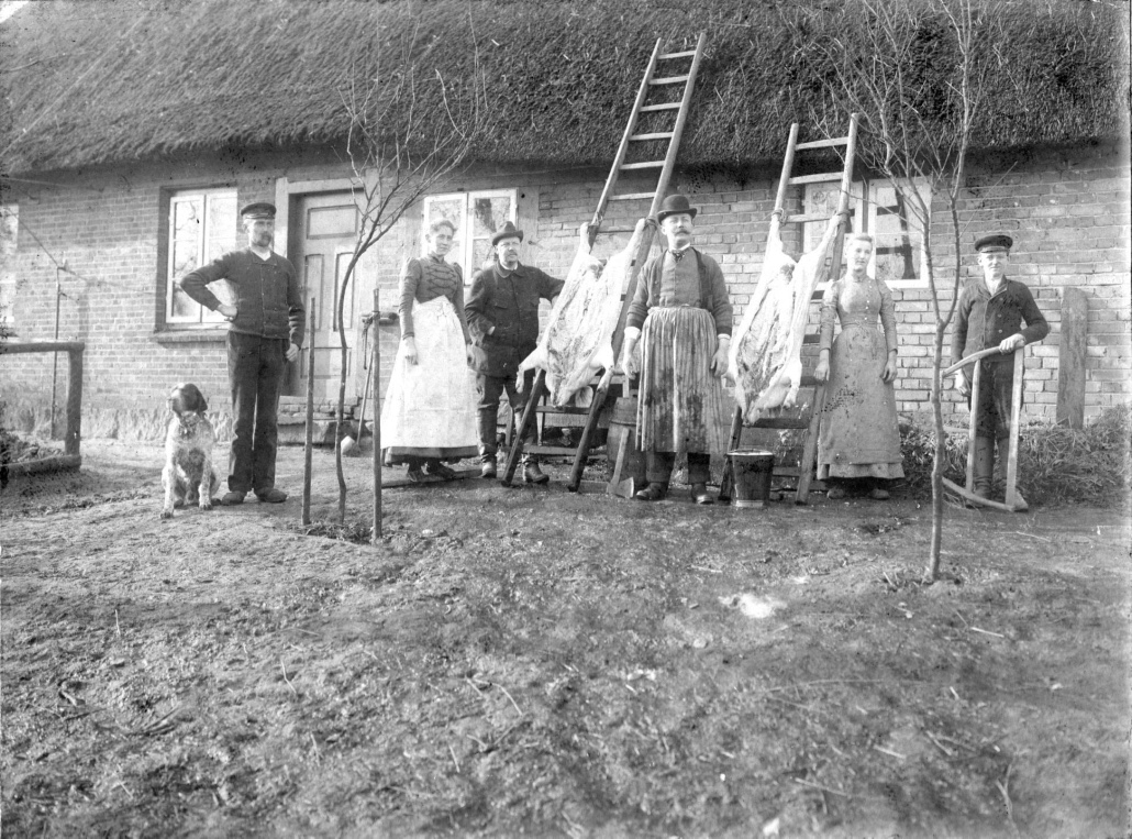 Foto von einem Schlachtfest, auch um die Jahrhundertwende aufgenommen. Links meine Urgroßeltern
